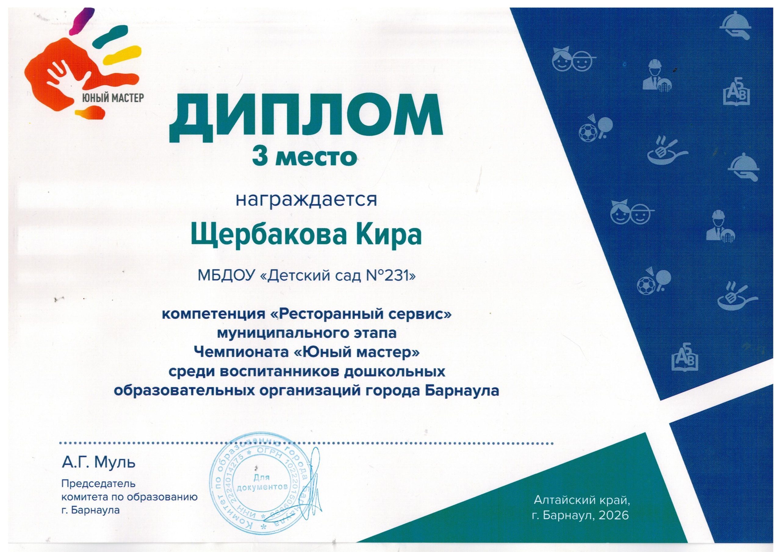 Младший воспитатель: