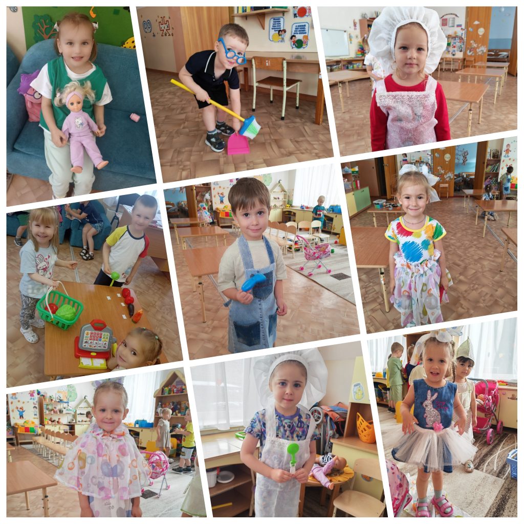 В процессе игры дети берут на себя различные роли: родителей, дворника, повара, продавца, модельера, кассира и т.д.